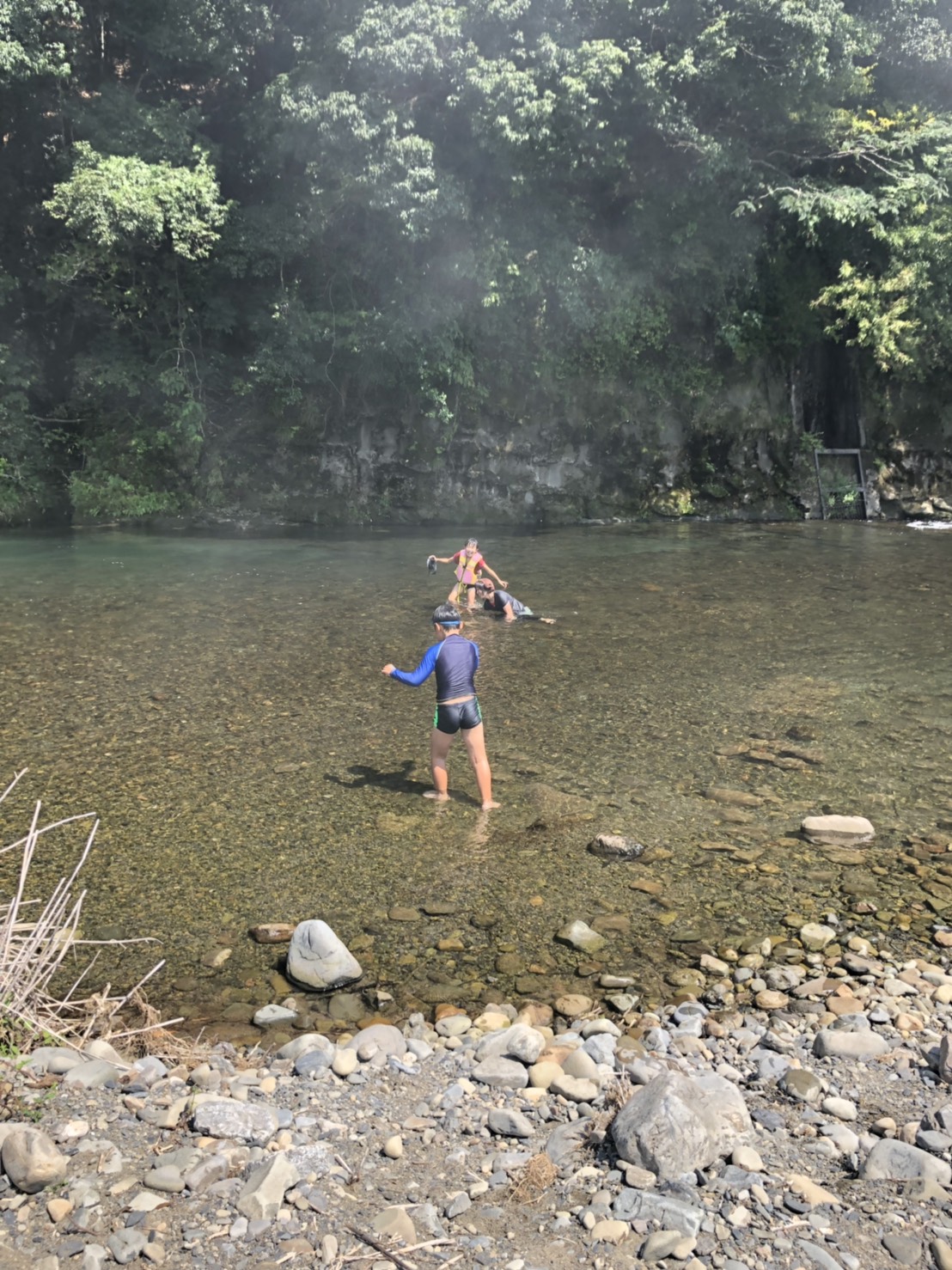足のつかない深い川を崖つたい歩いたり泳いだりはスリルがあって怖がってました。現地の綾の子供はなんてことなく泳いでたのはすごかったなぁ